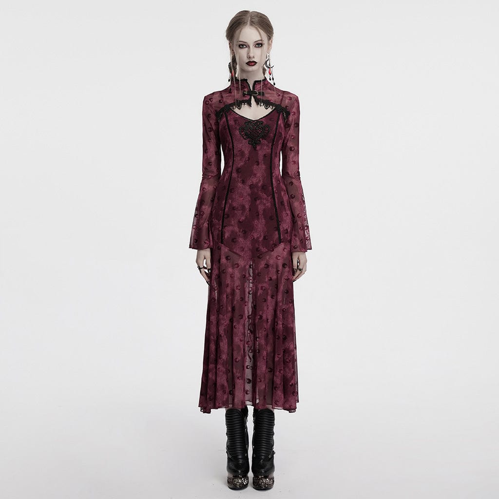 Women's Gothic Moon Printed Mesh Slip Dress with Cape Red