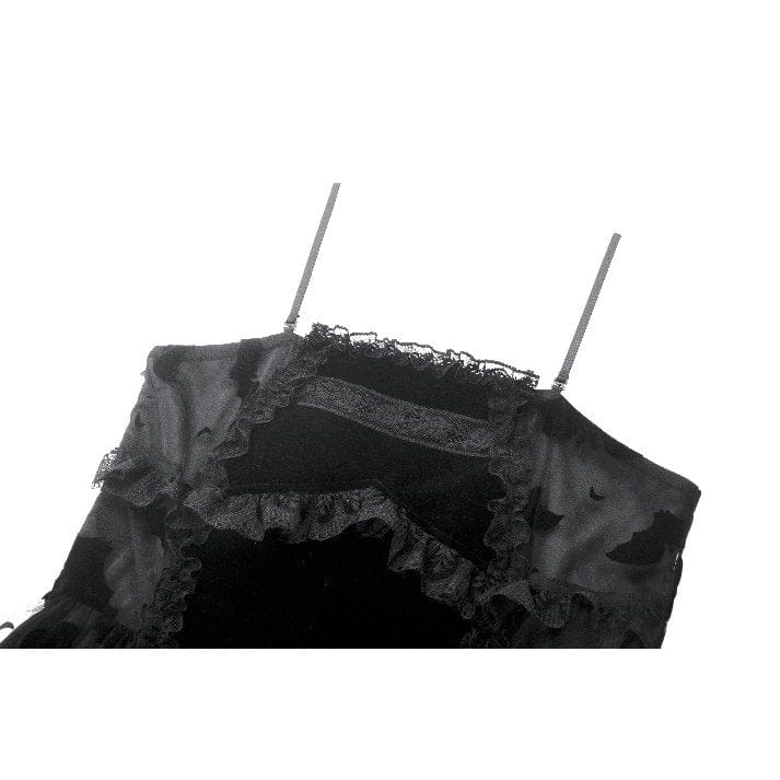Women's Gothic Multilayer Ruffles Lace Velet Slip Dress