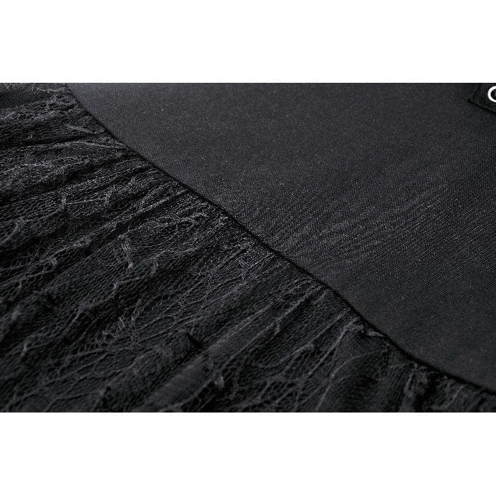 Spider mesh patchwork on the waist adds an element of darkness and intrigue, creating a visually captivating contrast against the solid fabric. This spider mesh detail adds texture and depth to the dress, enhancing its gothic aesthetic.