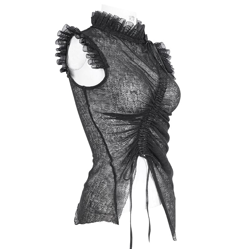 Women's Gothic Sheer Lace-Up Mesh Ruffled Top