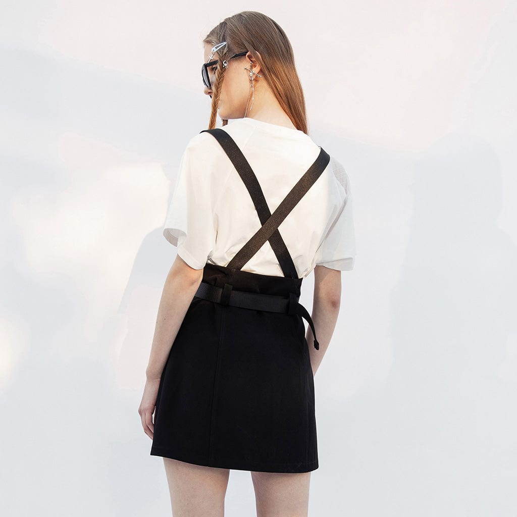Women's Grunge A-line Braces Skirts with Detachable Mental Chains