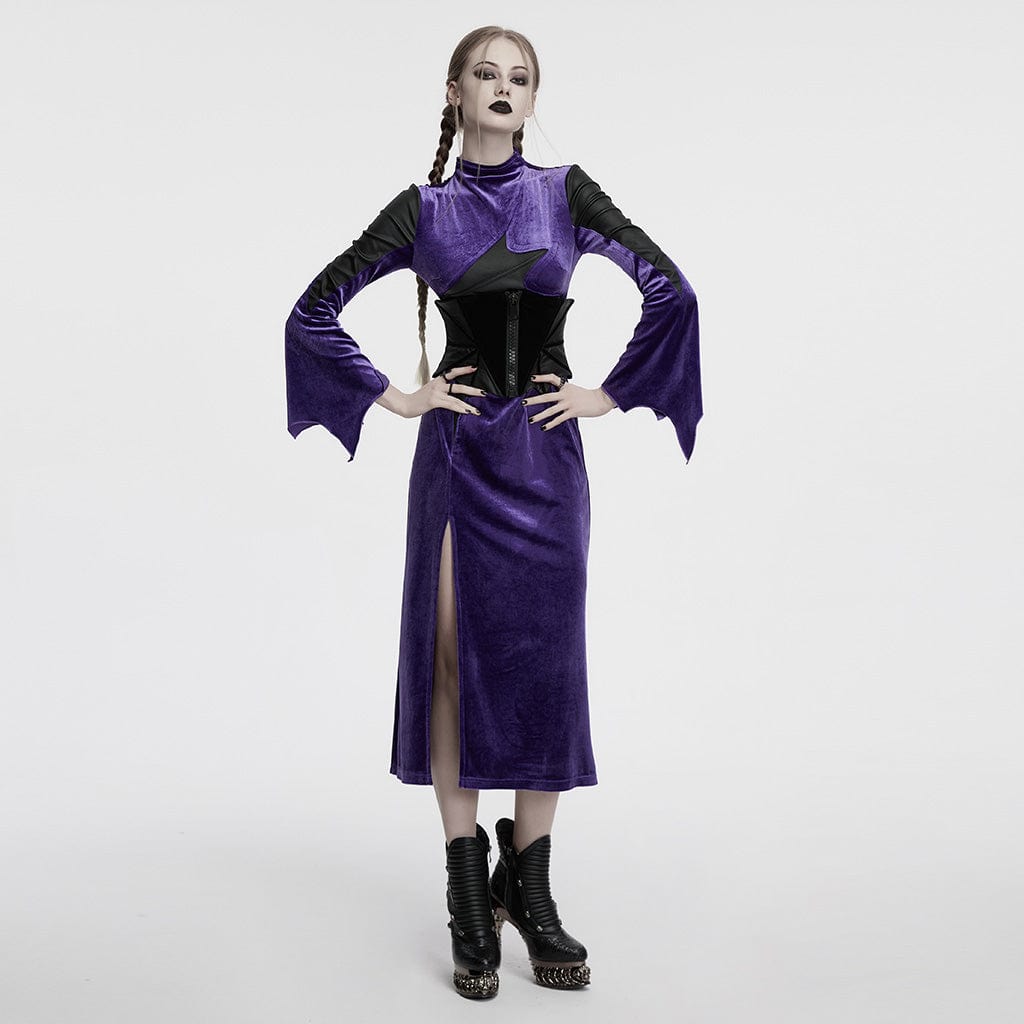 Women's Gothic Batwing Lace-up Velvet Underbust Corset