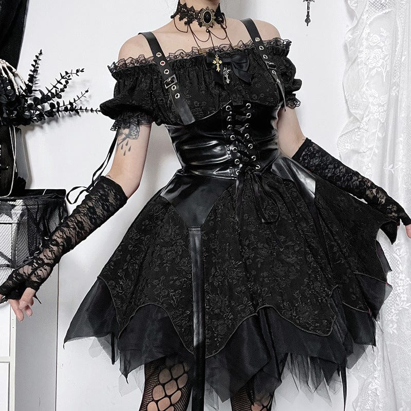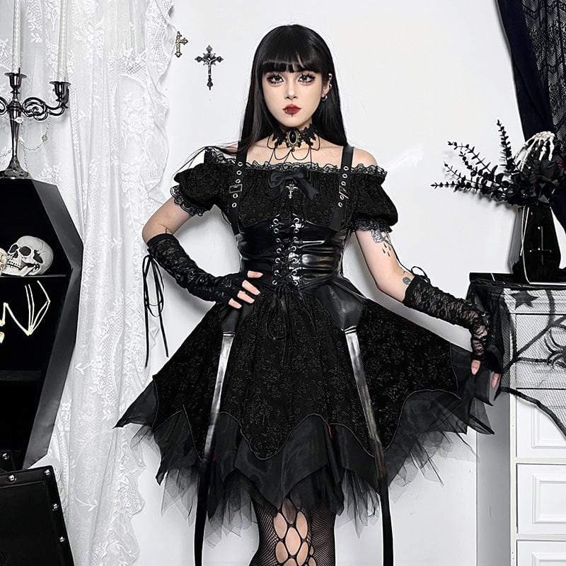 Women's Gothic Off Shoulder Puff Sleeved Multi-layer Short Dress