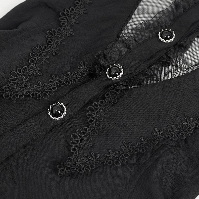 Women's Gothic Strappy Floral Embroidered Ruffled Vest