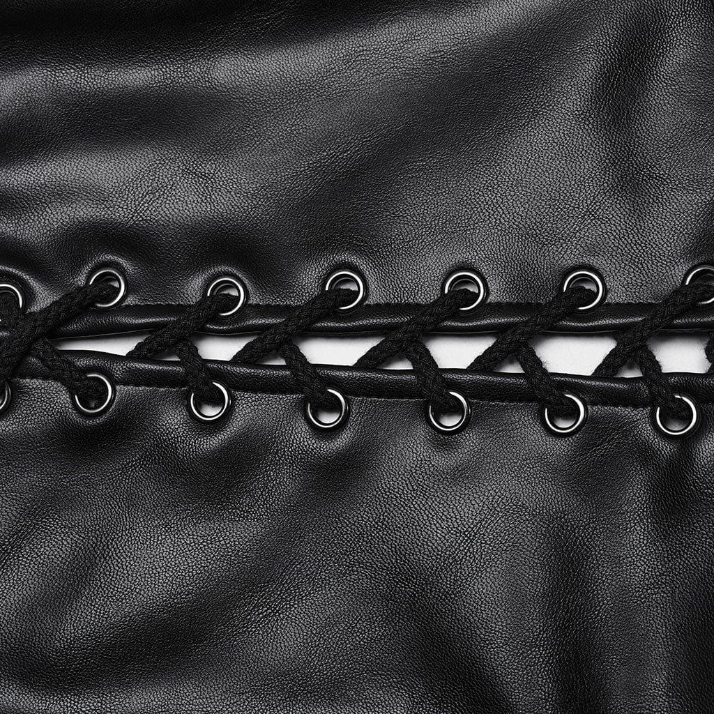 Lace-up detailing on both sides of the vest adds an element of customization and drama. These side laces can be adjusted to create a more fitted look, accentuating the waistline and providing a flattering fit. The lace-up design also introduces a textured contrast to the smooth faux leather, making the vest even more visually intriguing.