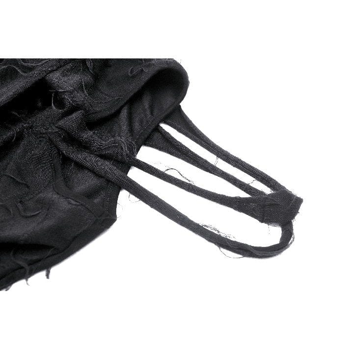 The design features a daring plunging V-neckline, accentuated by crossed strings that add a touch of intricacy and allure. The front of the vest boasts two pointed straps adorned with striking metal crosses, symbolizing defiance and individuality. These details not only elevate the vest's punk appeal but also add a hint of gothic mystique.