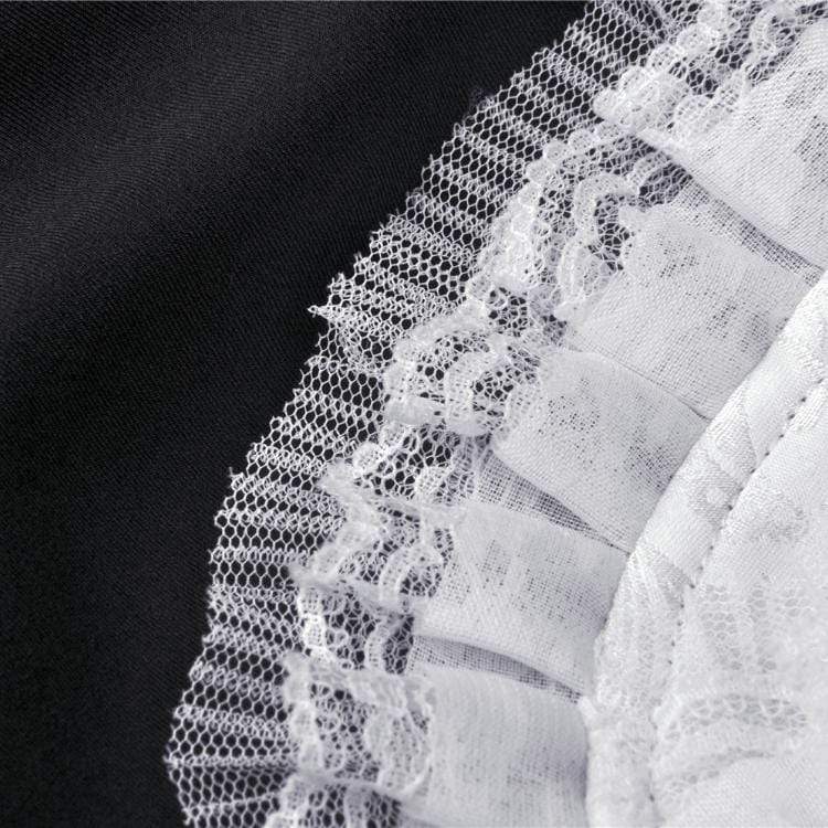 Women's Dark Cutout Shoulder Shirt Collar Black Dress Maid Dresses with Belt