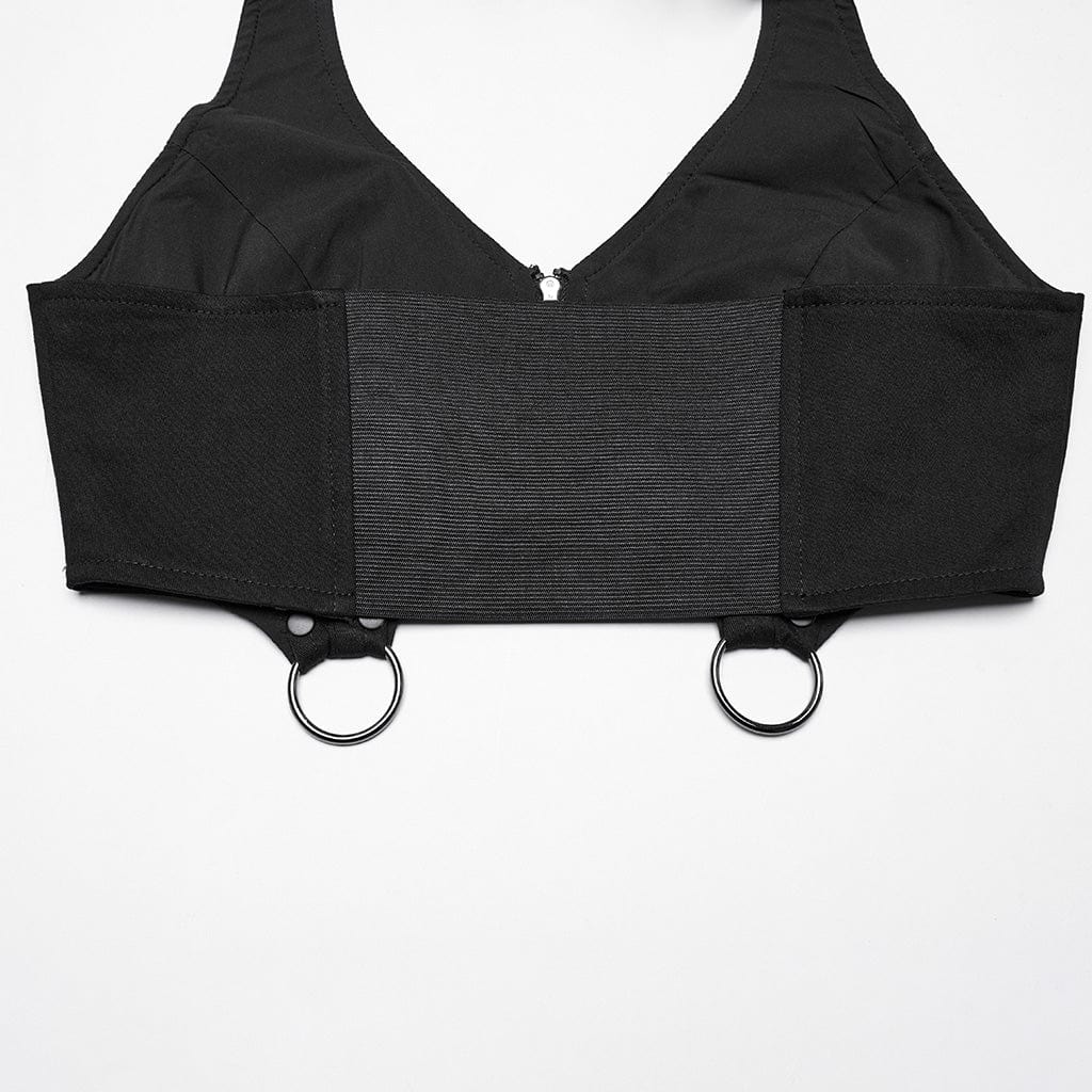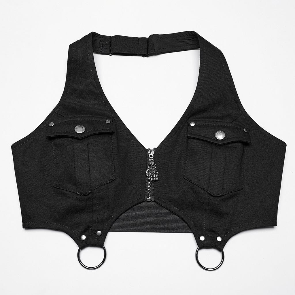 Women's Punk Multi-pockets Halterneck Tank Top with Skirt