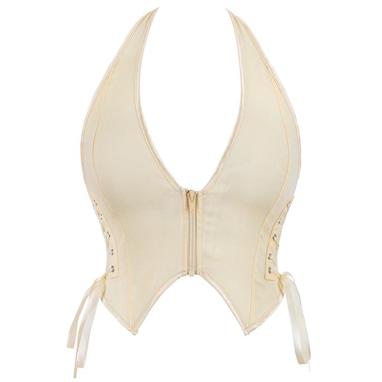 Women's Gothic Halterneck Lace-up Zip Bustier