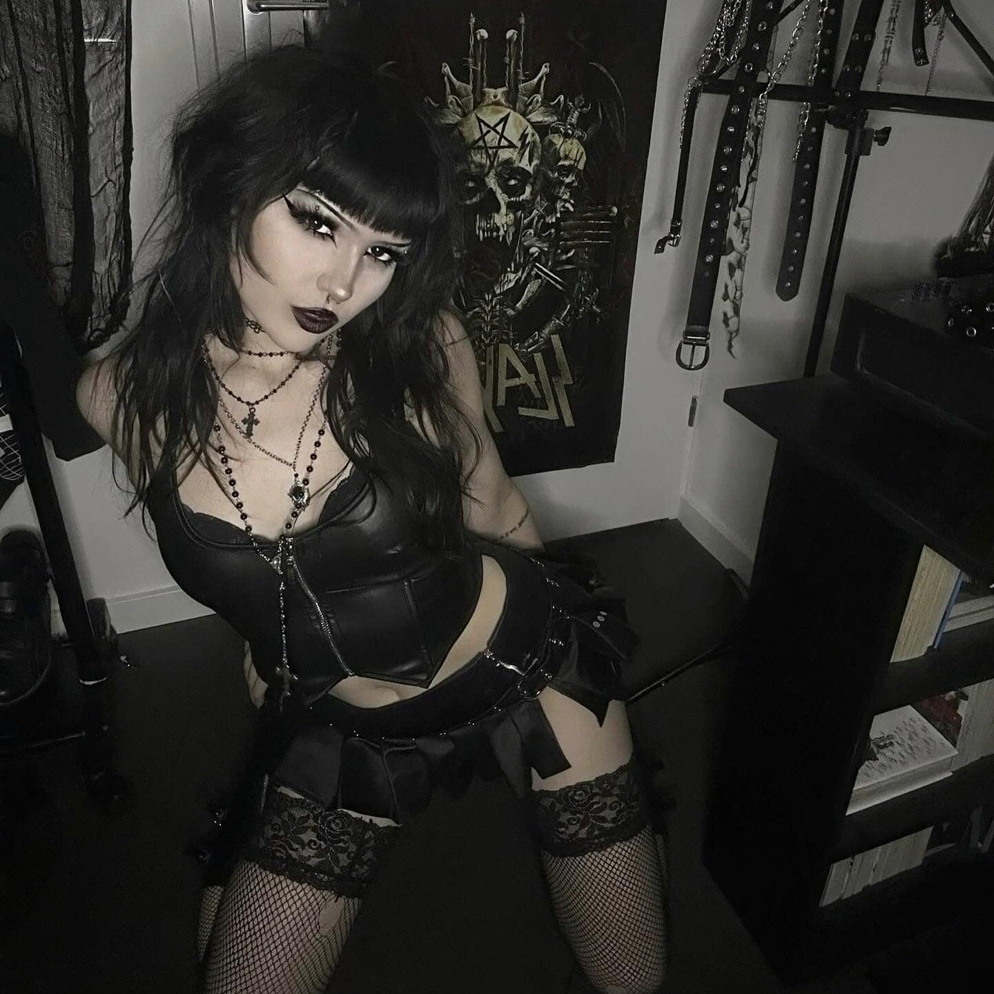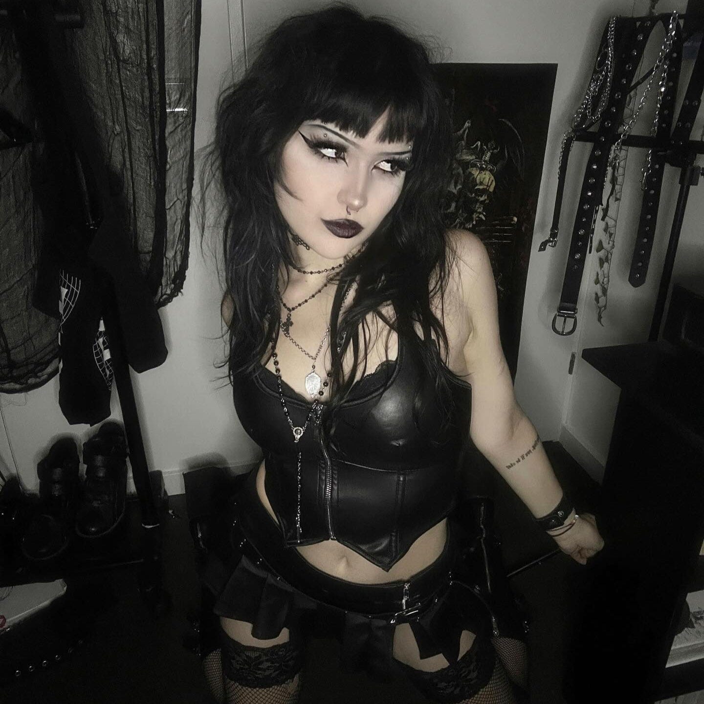 Women's Punk Zipper Halterneck Faux Leather Bustier