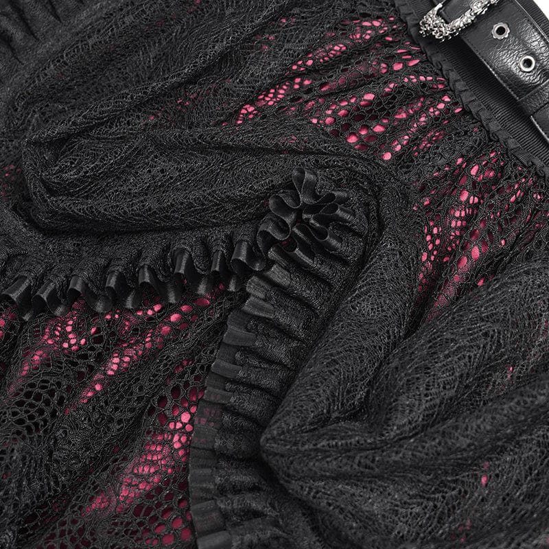Women's Gothic Buckle Strap Multilayer Hem Skirt Red