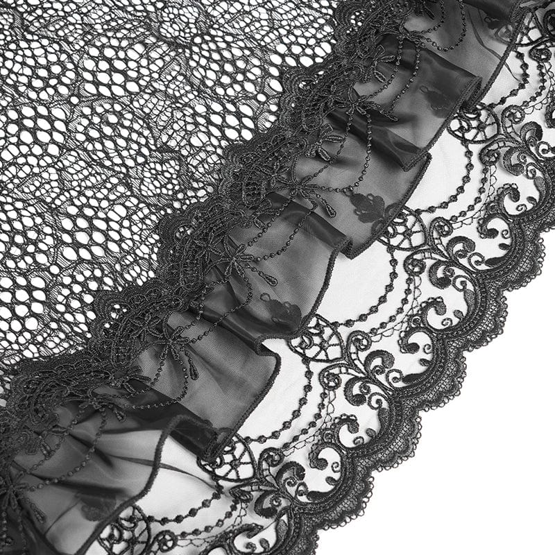 Lace - cut hem and sheer mesh craft ambiguous tension between concealment and exposure, echoing the “half - veiled” aesthetic in gothic literature. The subtle skin peek amplifies mysterious allure, aligning with gothic contradictory sensuality.