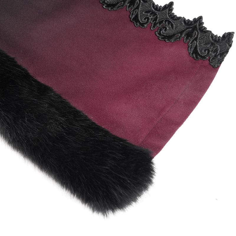 The fluffy faux fur collar resonates with the blood-red gradient, while twining lace and covert clasps infuse Gothic's retro eeriness into every detail—reanimating the haunting, timeless imagery of dark fairy tales.