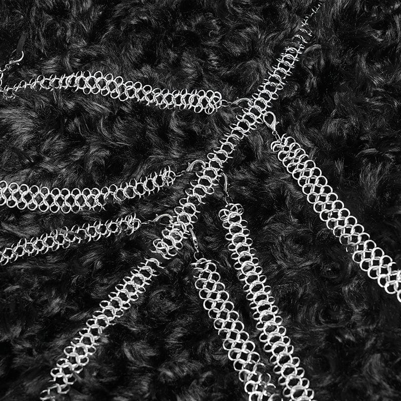 Silver metal chains radiate outward, resembling thorn - like shackles. They infuse the shawl with a rebellious, cold vibe that merges punk and Gothic, amplifying the dark visual impact.