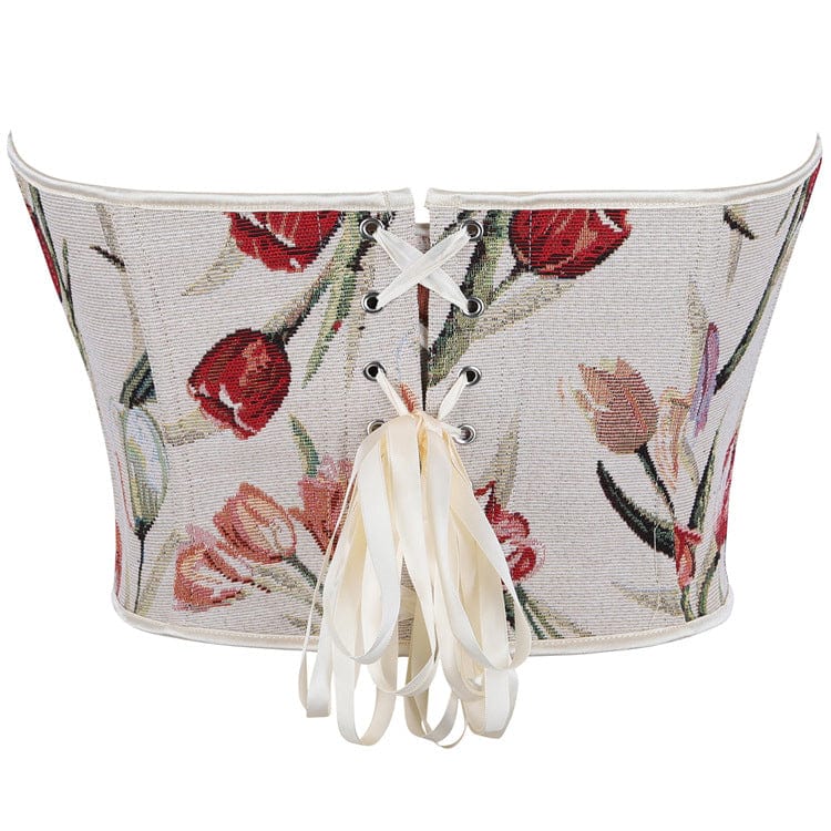 Women's Gothic Floral Jacquard Lace-up Overbust Corset