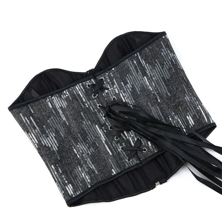 Women's Gothic Sequin Zipper Overbust Corset