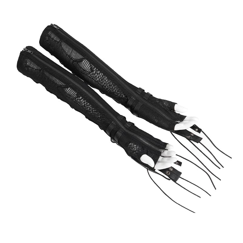 Women's Punk Drawstring Mesh Fingerless Gloves