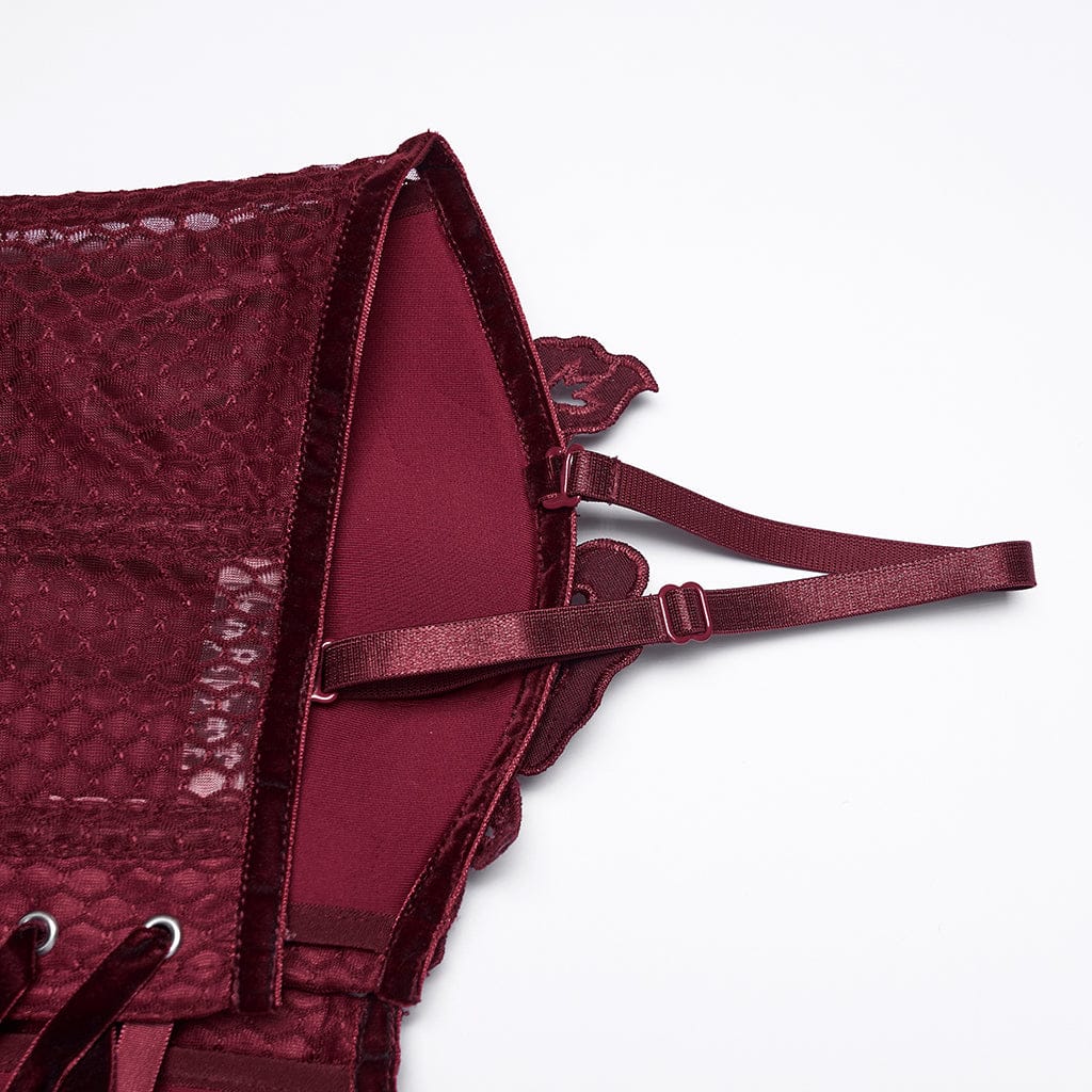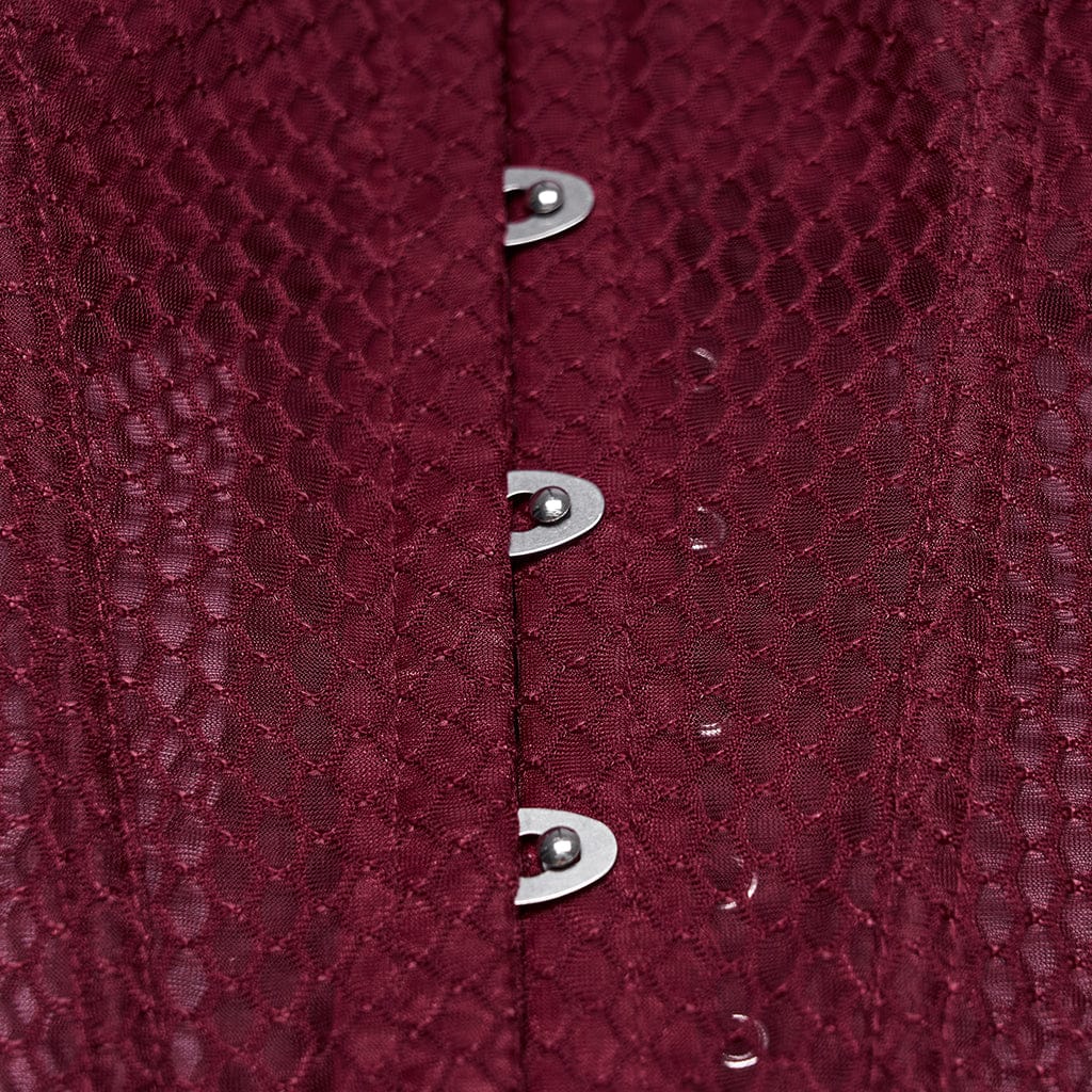 Pair it with a high-waisted gothic velvet mermaid skirt and platform boots for a casual daytime look, or style it with a gothic fishnet skirt and choker for a moody party outfit. It also shines at gothic-themed events, where its sheer mesh and lace-up design elevate the darkly graceful vibe.