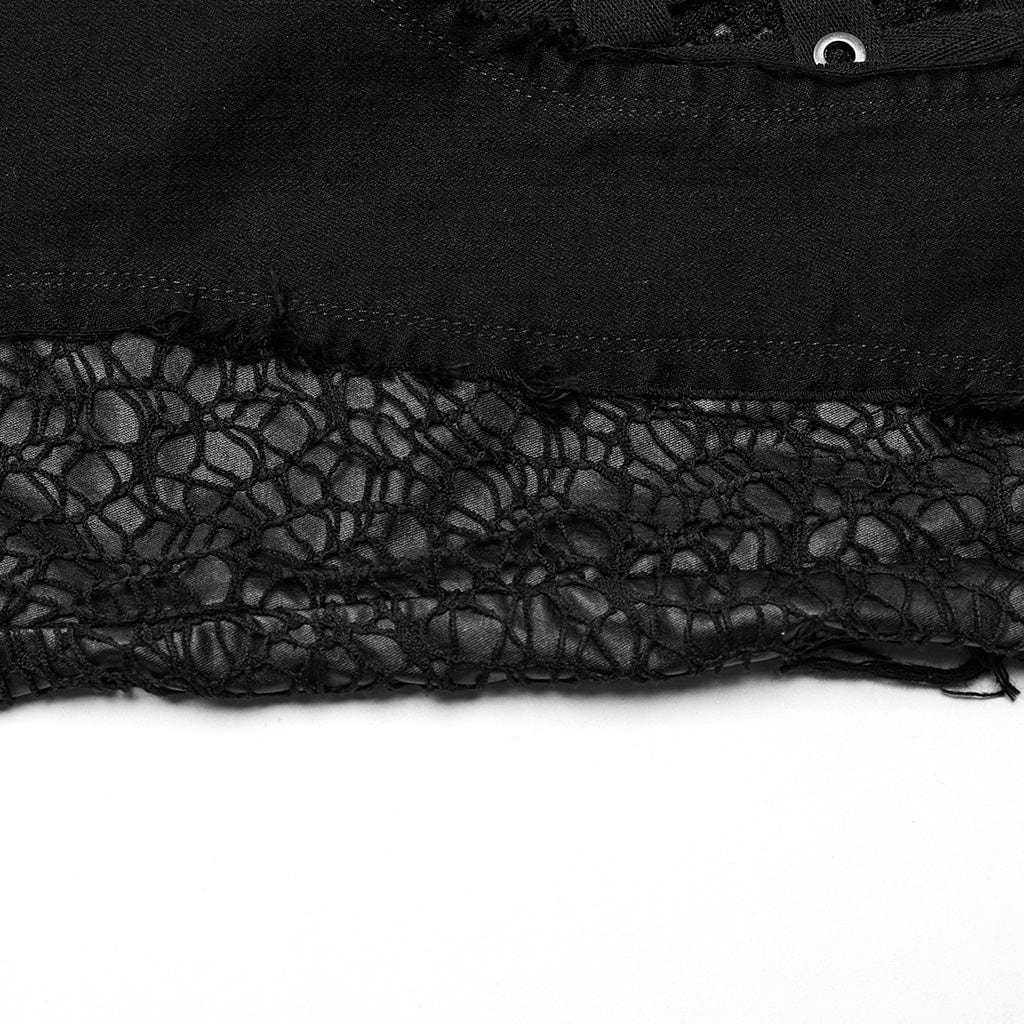 This pair of punk pants is made of elastic denim fabric and patchwork with mesh. Detailed design with unedged, multi-buckles, and eyelet straps. Flared silhouette and good elastic fabric.