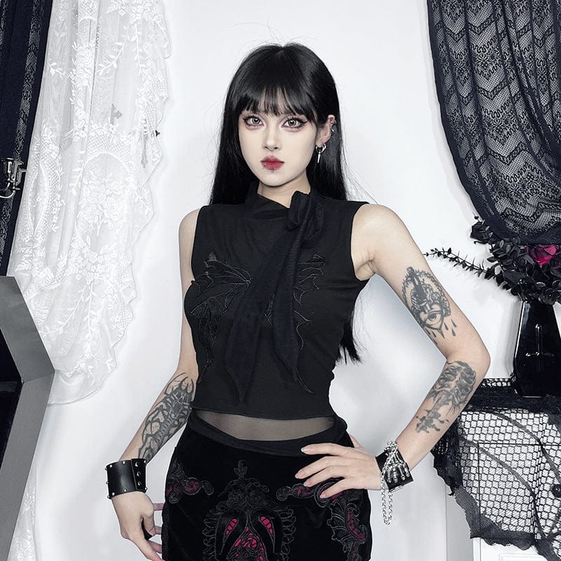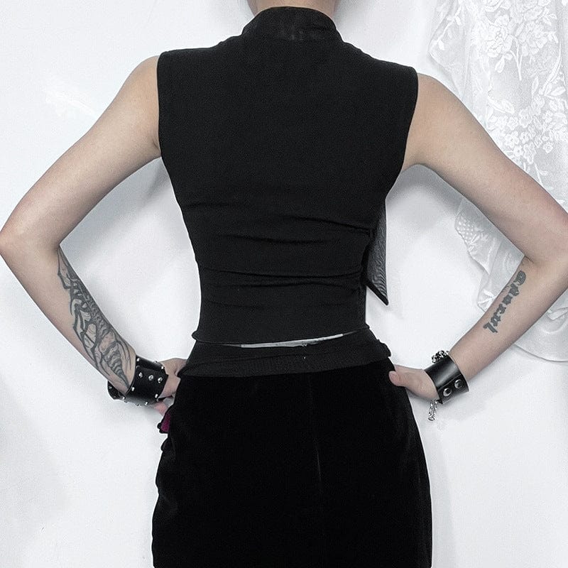 The tank top features exquisite patchwork on the neck and lining, adding texture and depth to the design. A half-high collar enhances the gothic vibe, creating a sophisticated yet edgy look that's perfect for any occasion.