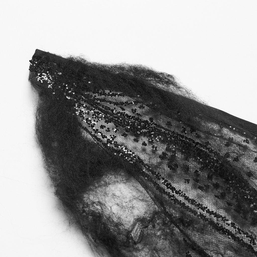 The wings feature a dark, shimmering butterfly design that is both mesmerizing and dramatic. The butterfly motif is adorned with messy mesh cotton, adding texture and depth to the design. This cotton mesh is not only visually striking but also highly versatile, allowing for creative shaping and manipulation to achieve the desired look.