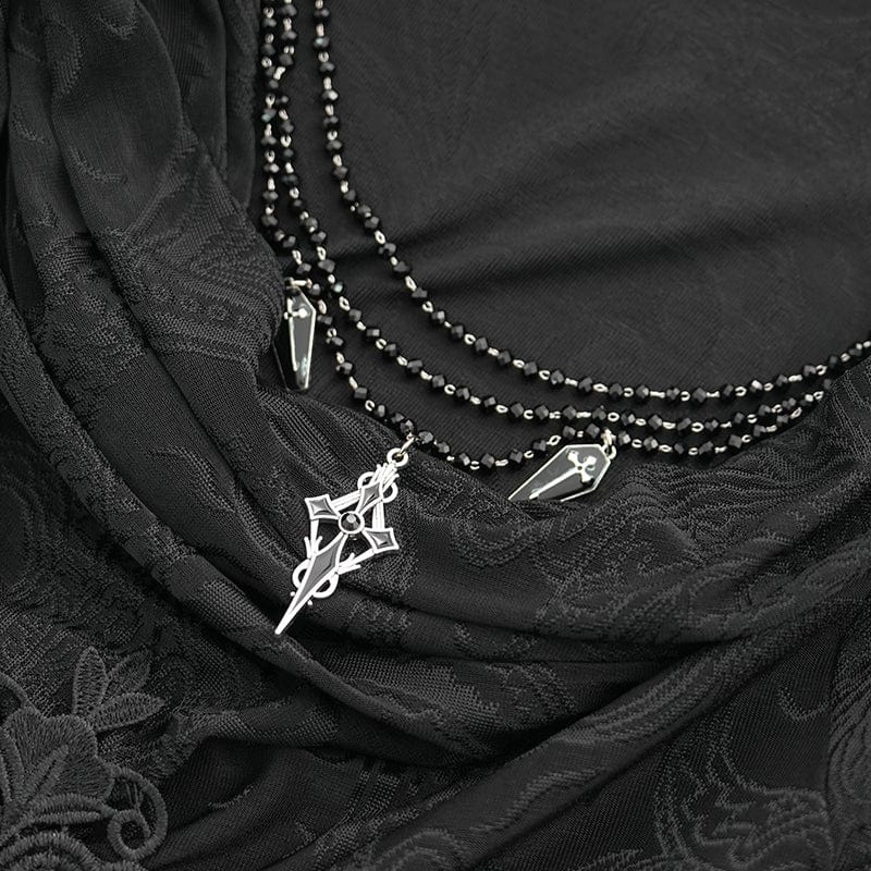 Adding to its gothic appeal, the lace-up detailing along the sleeves allows for an adjustable fit while accentuating the ethereal aesthetic of the design. The flared bell sleeves, reminiscent of medieval and Victorian influences, bring an element of regal grace, making this shirt ideal for those who embrace alternative fashion with a touch of historical inspiration. A stunning embroidered motif at the front serves as the centerpiece, drawing attention to the intricate craftsmanship and gothic symbolism.