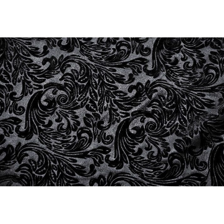 The neckline is adorned with velvet embroidery, infusing the design with a touch of Gothic romance and creating a classic yet intricate detail that elevates the overall look. This decorative element serves as a statement piece while maintaining the top's elegant simplicity.