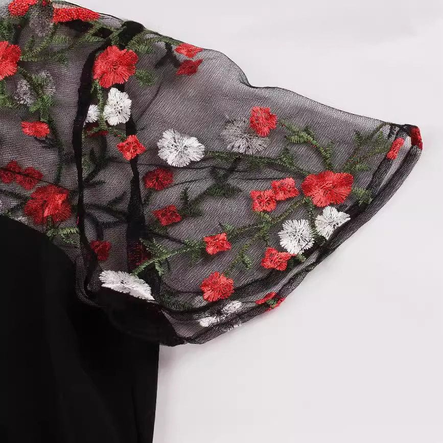 Women's Gothic Floral Embroidered Mesh Splice Honeymoon Dress