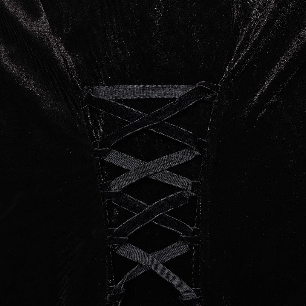 Women's Gothic Lace Splice Velvet Fishtailed Prom Dress Black