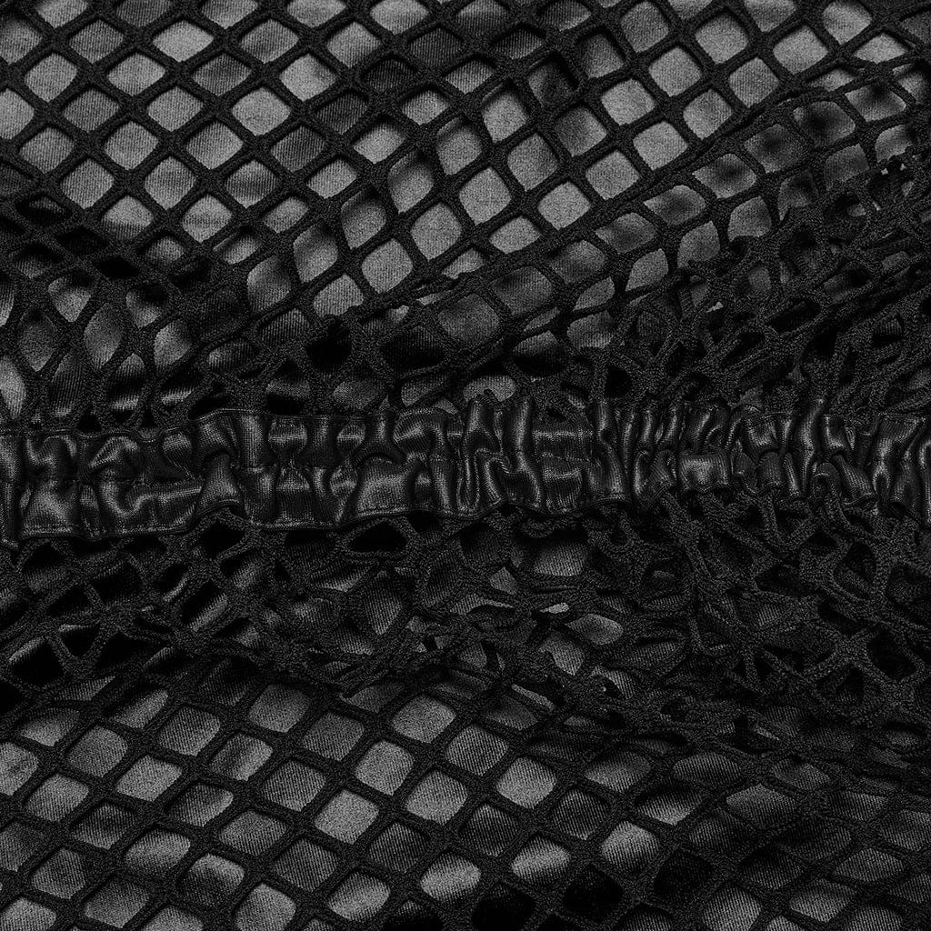Women's Gothic Mesh Splice Drawstring Slip Dress Black