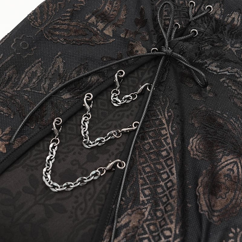 The slim-fitted silhouette enhances your natural curves, while the high side slit provides both dramatic movement and a sultry edge. A lace-up back design ensures a custom, form-hugging fit, while delicate metal chain embellishments on the waist add a rebellious punk rock energy.