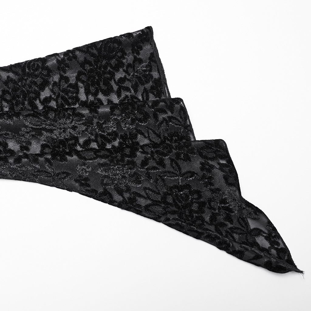The dress flows into a fishtailed hem, creating a graceful silhouette that moves beautifully with every step. With its slim-fit cut and high-quality elastic fabric, this gown promises to accentuate your curves and provide comfort throughout the evening. Perfect for gothic soirées, formal events, or a gothic-themed wedding.