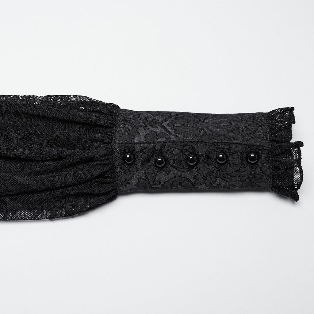 Embrace gothic elegance with the Women's Gothic Plunging Puff Sleeved Lace-up Shirt, a beautifully crafted piece that combines romantic gothic charm with punk sophistication. Made from luxurious jacquard and delicate lace, this shirt features intricate textures that elevate its dark allure.