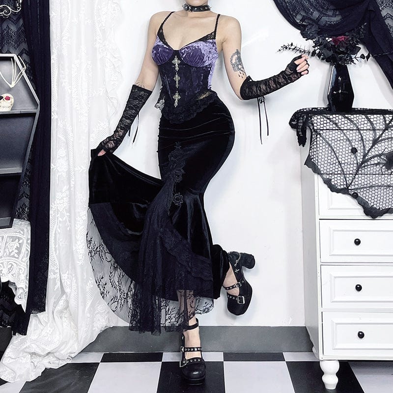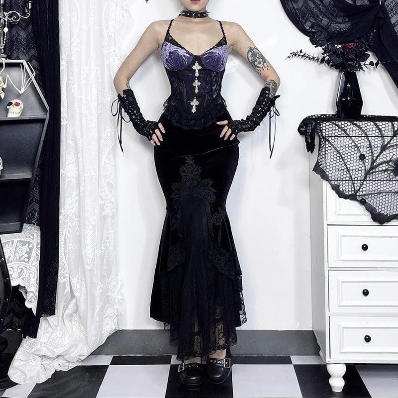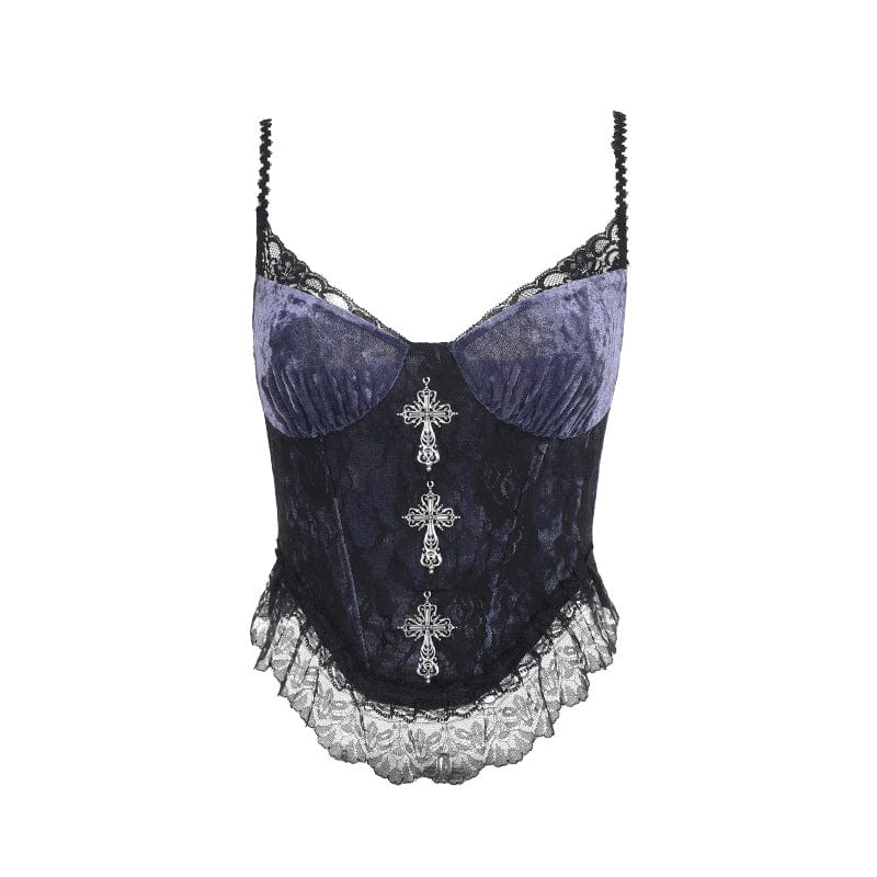 Women's Gothic Rose Lace Splice Velvet Tank Top