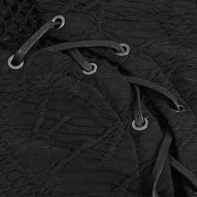 Women's Gothic Ruched Strap Splice Mesh Crop Top