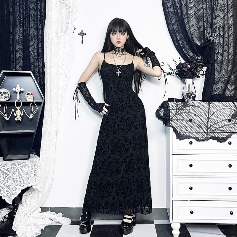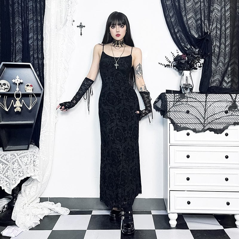 Women's Gothic Shoulder Straps Slim Fitted Long Slip Dress