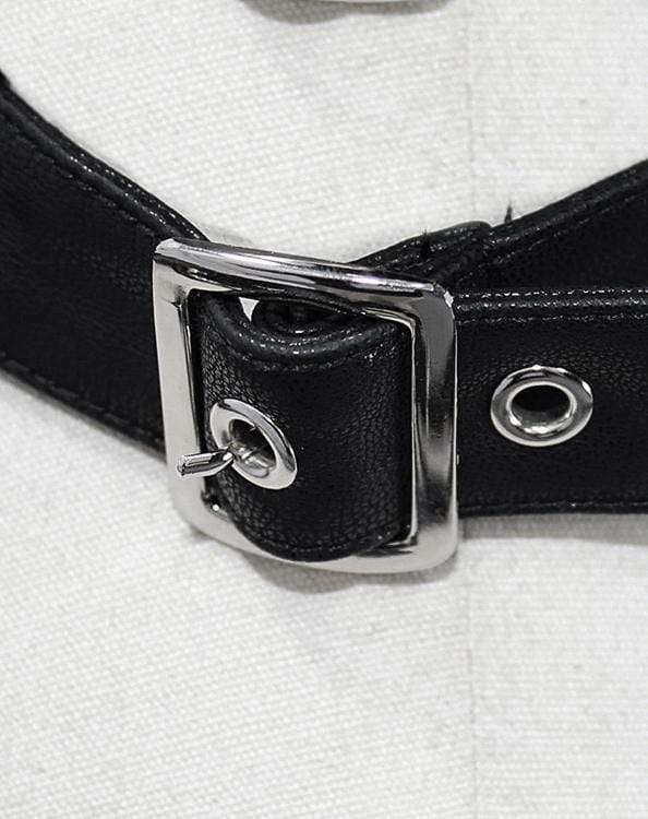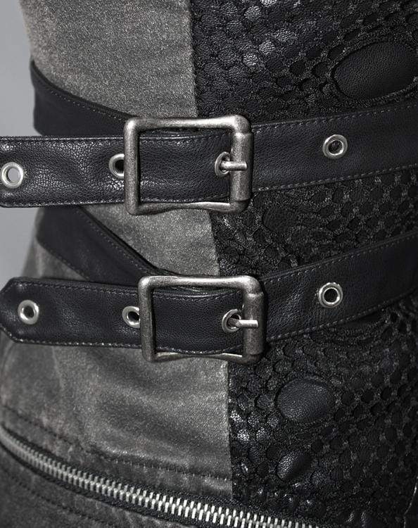 Women's Punk Stand Collar Rivets Lacing Faux Fur Jacket