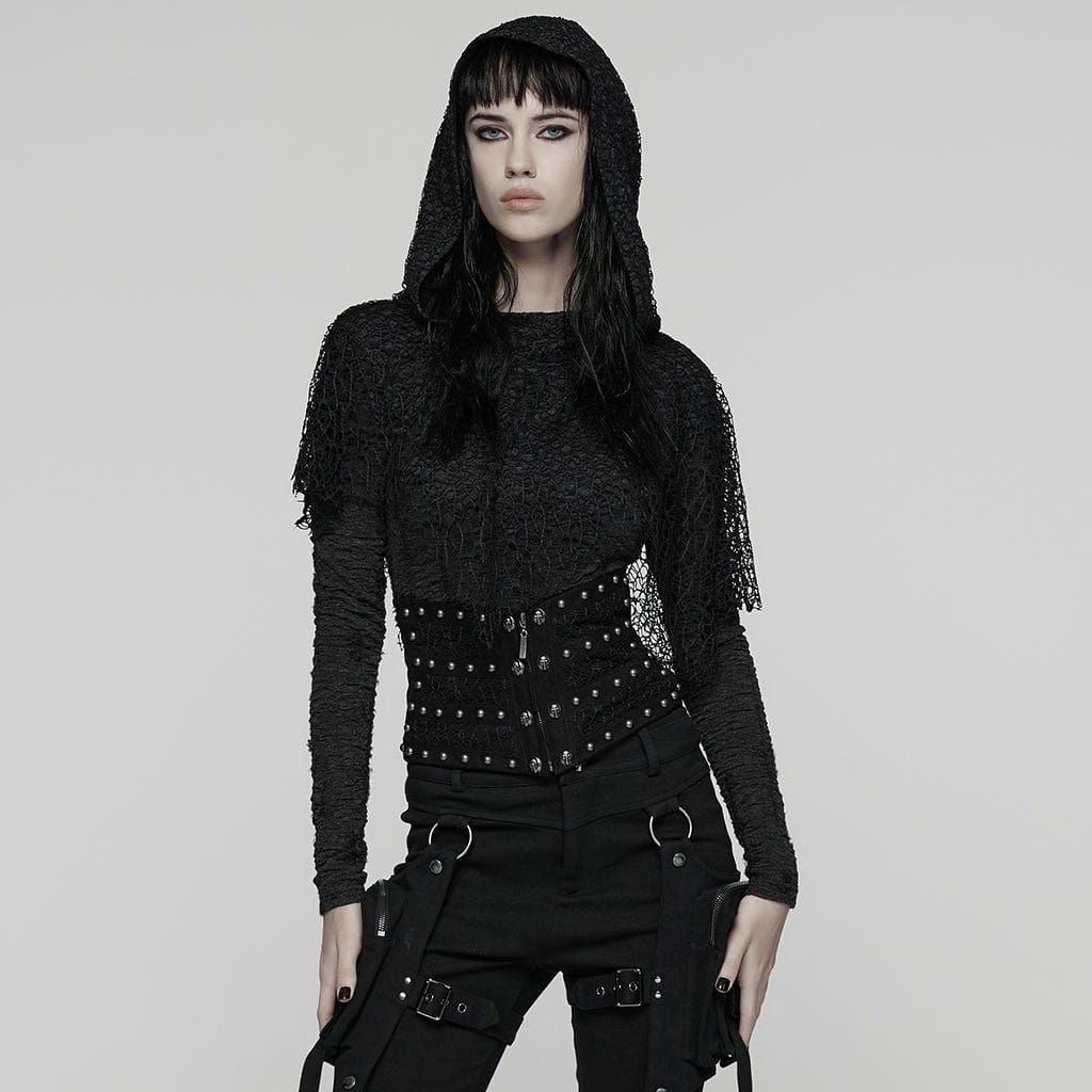 The corset tailoring precisely shapes the body. Meanwhile, it conveys punk symbols through skulls and rivets. It realizes the dual needs of "remodeling the body+expressing attitude" by integrating the clothing structure and decorative elements.