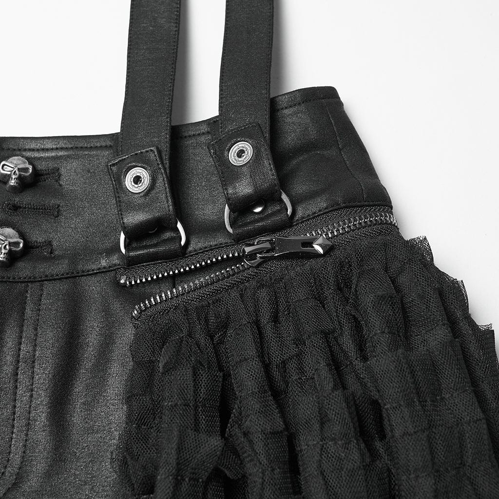 The all-black tone plus the neat short length precisely outlines the body lines, condensing the coolness and sharpness of punk into a compact version, conveying the ultimate rebellious aura with a minimalist silhouette.