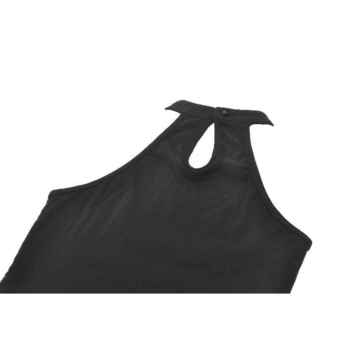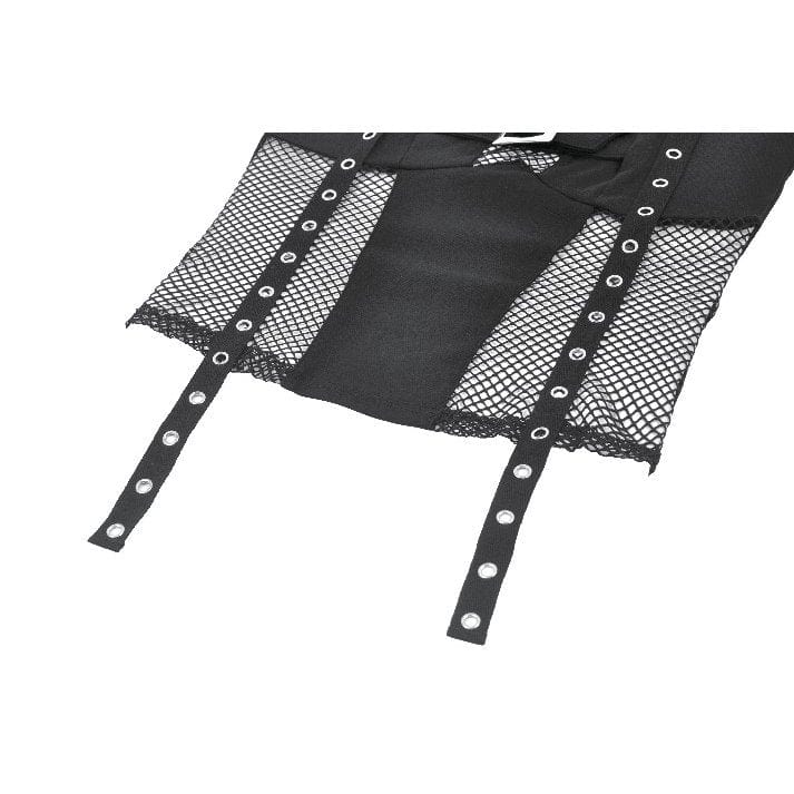 Women's Punk Eyelet Strap Halterneck Mesh Panel Top