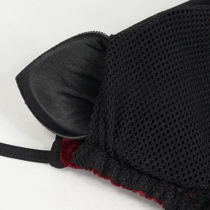 This gothic bikini is made of velvet fabric. The bustier is a halter neck with star embroidery on the bust and drawstring. The bottom is tie side and star metal patchwork. Lace-up on the back for adjustment. Available in two colors.