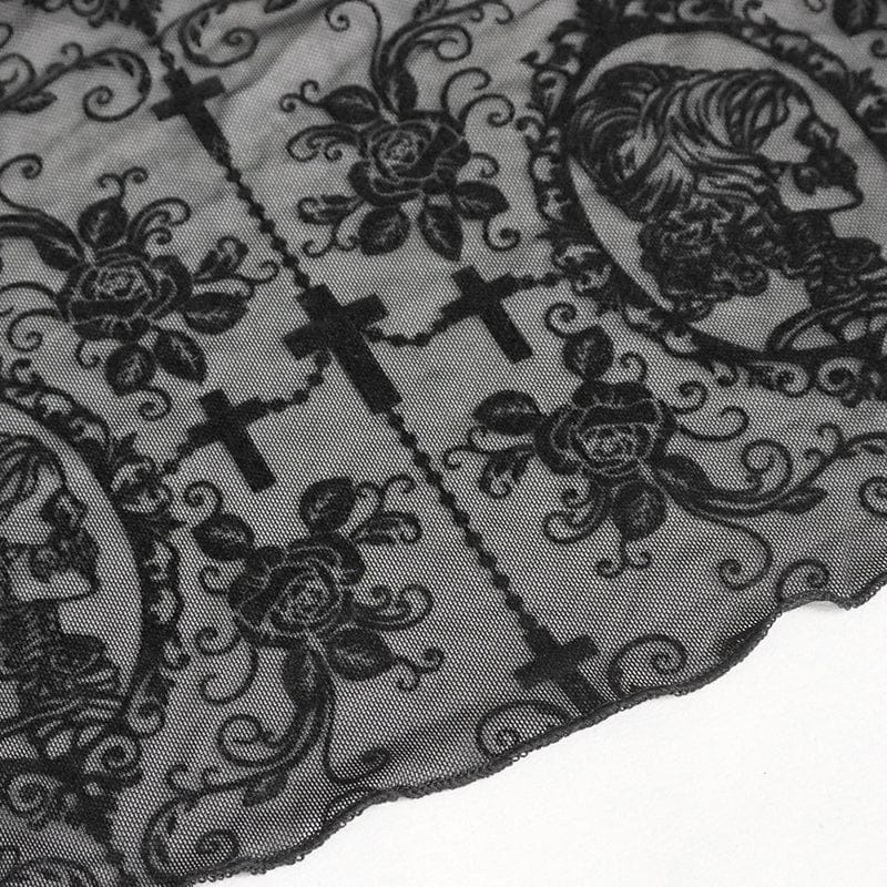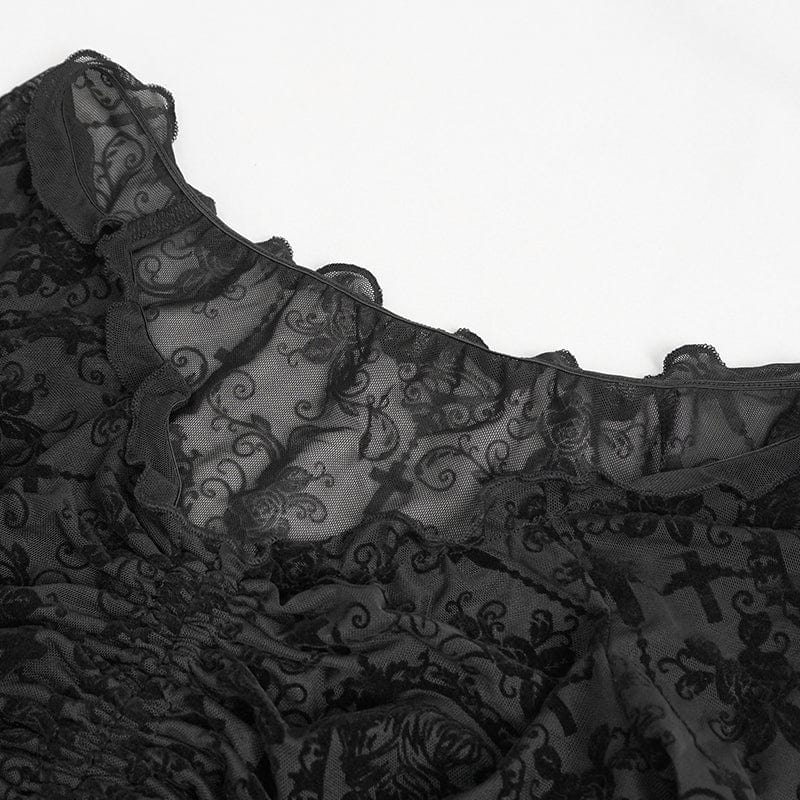 Women's Gothic Off Shoulder Drawstring Sheer Crop Top