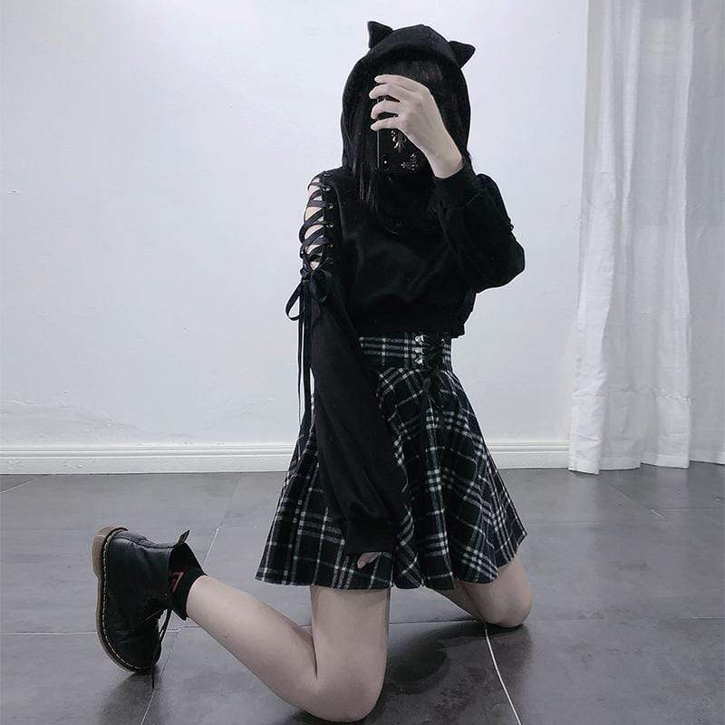 Women's Lace-up Hollowed Short Sweatershirts With Hood