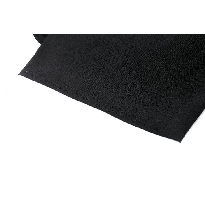 The defining feature of this crop top is its mesh patchwork on the front, which adds a touch of rebellious flair and creates a captivating visual effect. The mesh design also incorporates hollow-out details, adding a hint of allure while maintaining a bold and confident look.