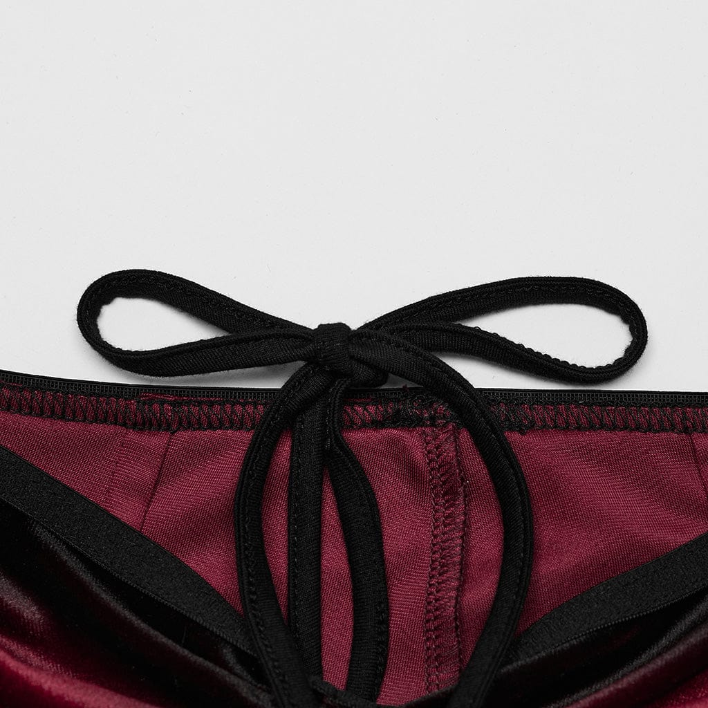 Women's Gothic Contrast Color Drawstring Velvet Flared Pants Red