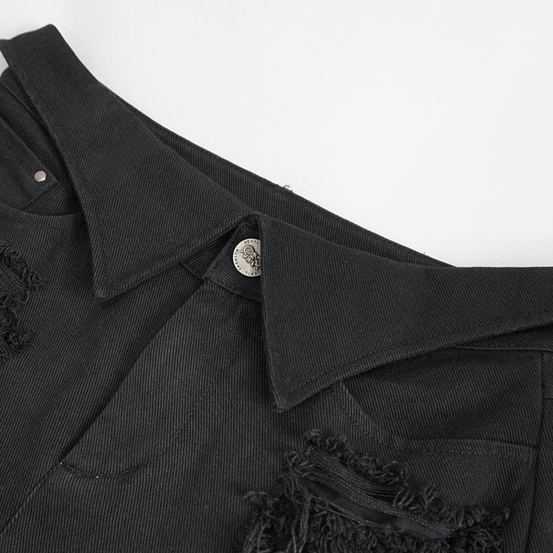 Women's Punk Detachable Mesh Splice Ripped Pants