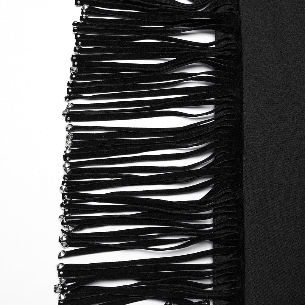 The standout feature of these pants is the lace-up detailing on both sides, which is complemented by metal eyelets for an added punk goth edge. The detachable tassels along the sides create a dramatic and unique look, perfect for those who want to add an extra flair to their outfit. The tassels add movement and texture, making them an eye-catching addition to your alternative fashion wardrobe.