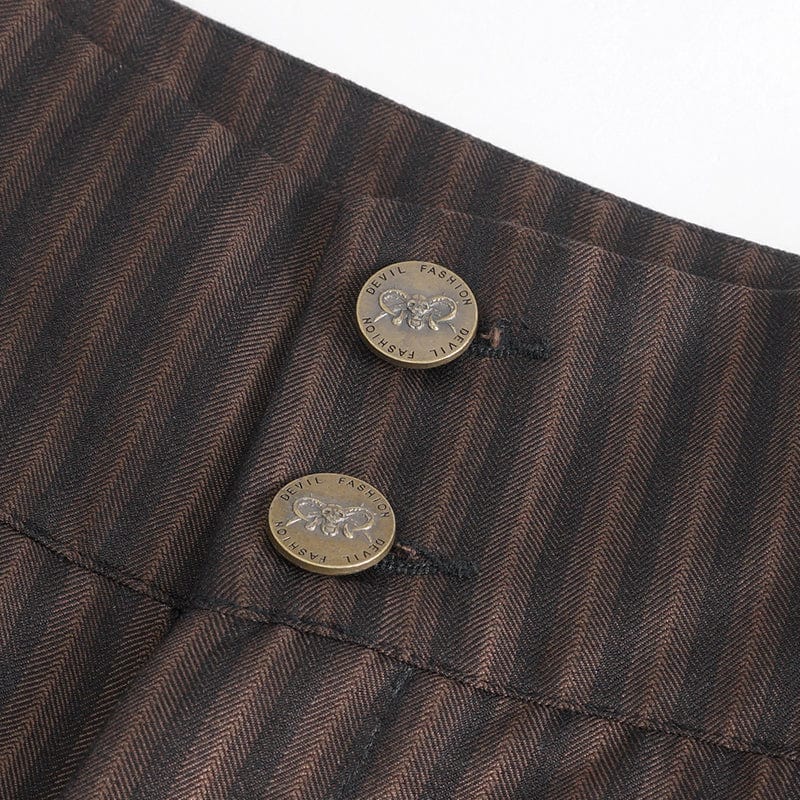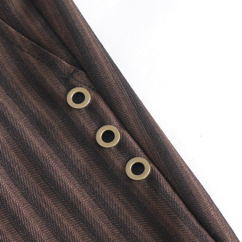 Men's Gothic High-waisted Lace-up Striped Coffee Pants