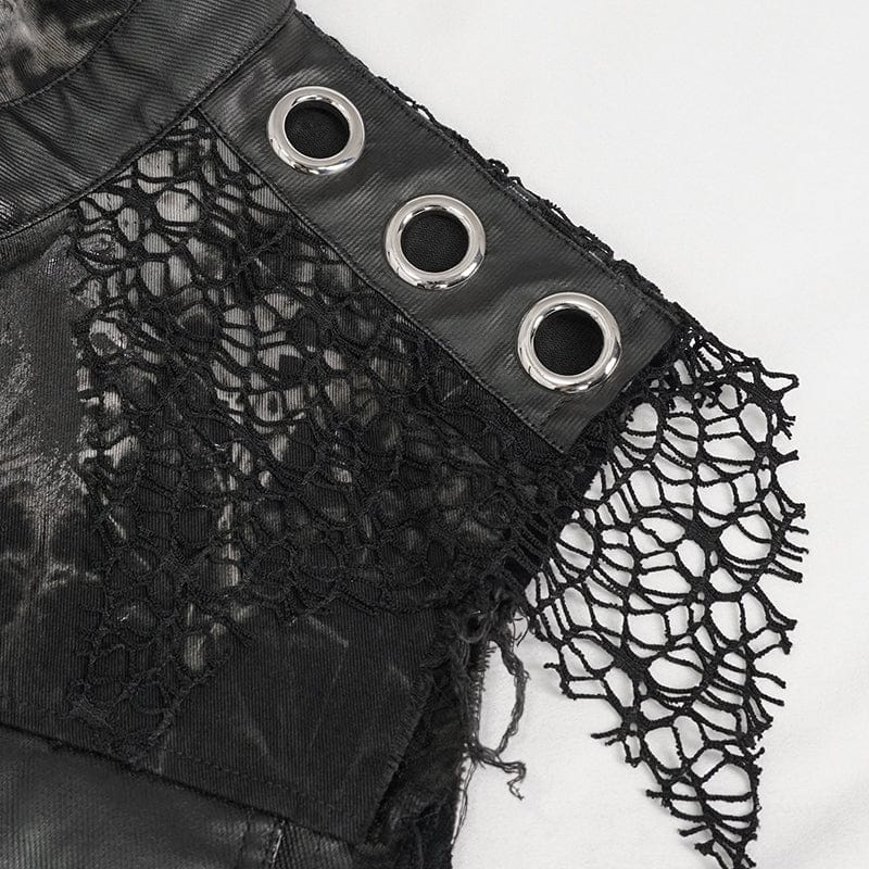 Men's Gothic Mesh Splice Rivet Distressed Wasitcoat