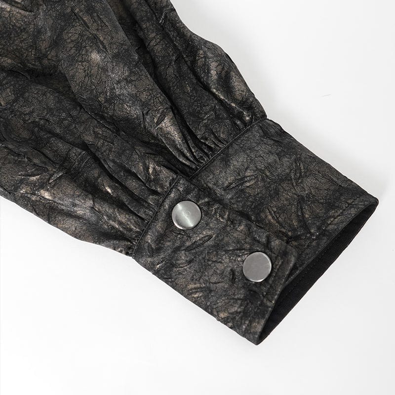 Men's Gothic Puff Sleeved Faux Leather Splice Shirt with Chain